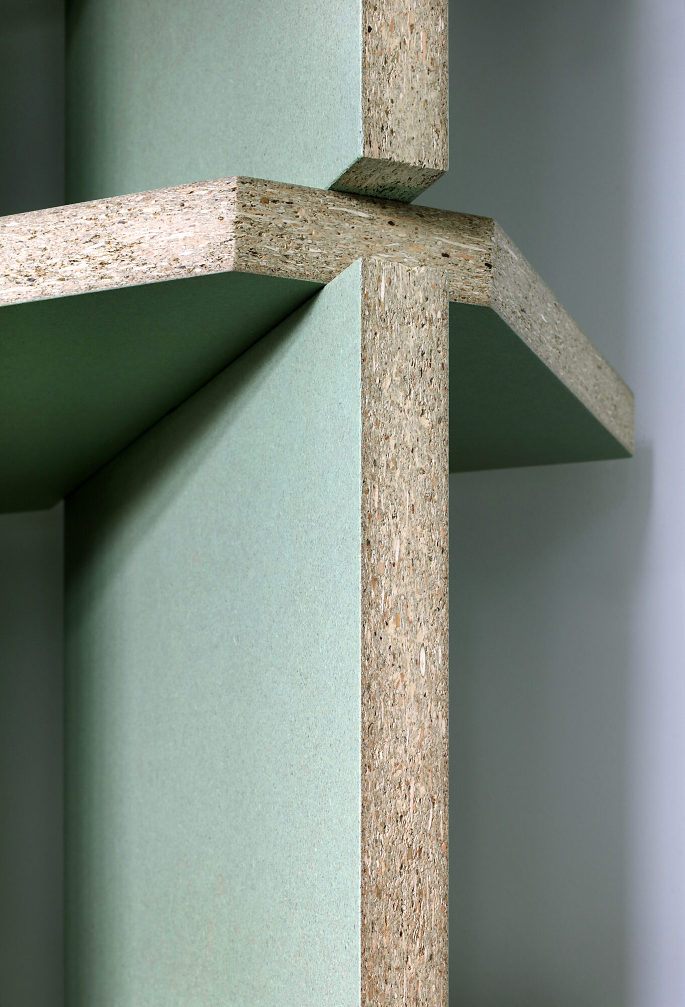 The library was conceived from the base logic of stacking and sliding panels. No screws are needed for its assembly. Its strength comes from the clever but simple manner of intertwining the vertical and horizontal elements. Longer, shorter, higher or lower variations can be made, all following the same principle.